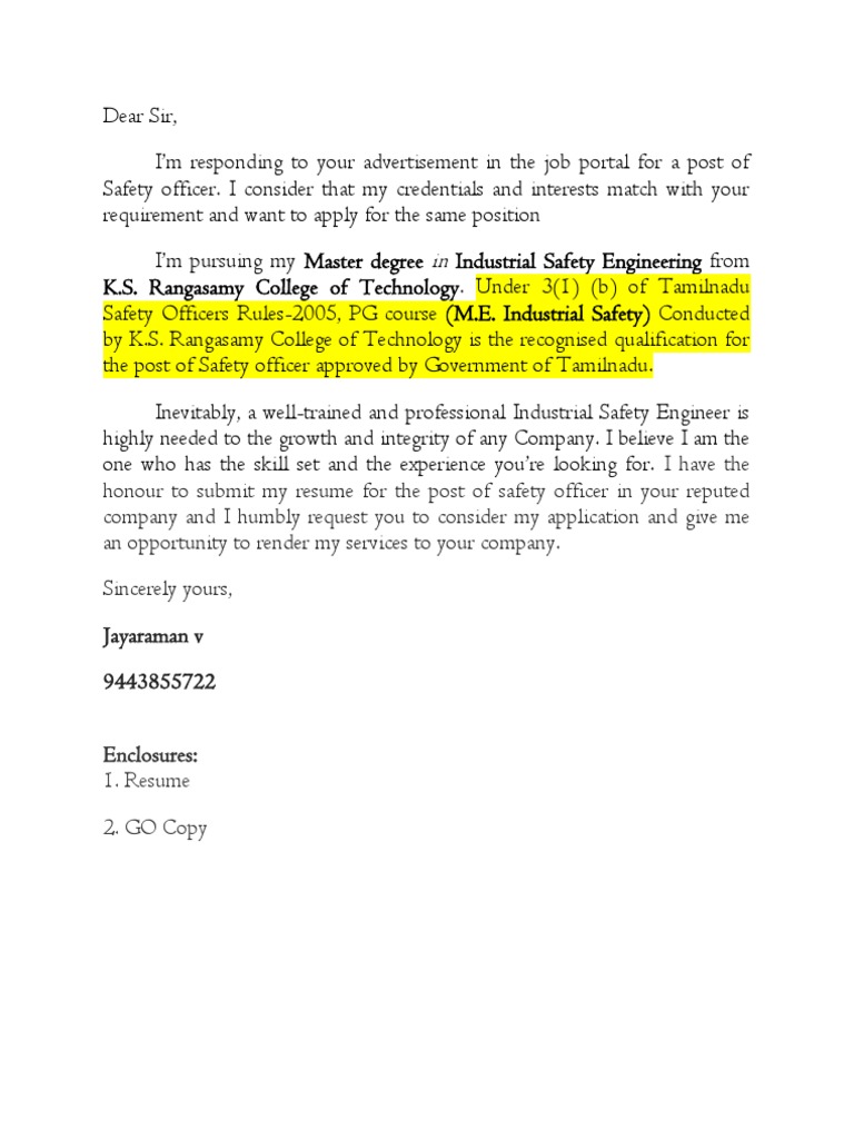 Cover Letter Model For Hse Officer Academic Degree Educational
